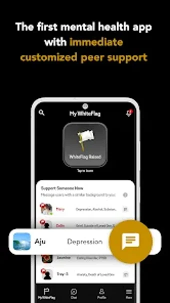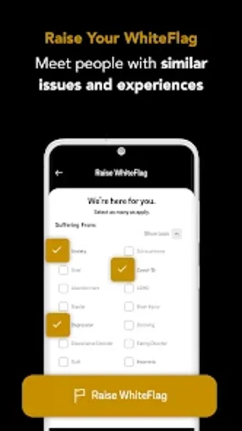 WhiteFlag Mental Health Appは、ユーザー同士をマッチングすることを目的としたピアサポートソフトウェアプラットフォームです。このアプリをダウンロードした誰でも、特定の不安や懸念に対して「白旗」を上げることができます。つまり、チェックボックスを選択することを意味します。そのため、カスタマイズされた個人的なサポートが提供されます。